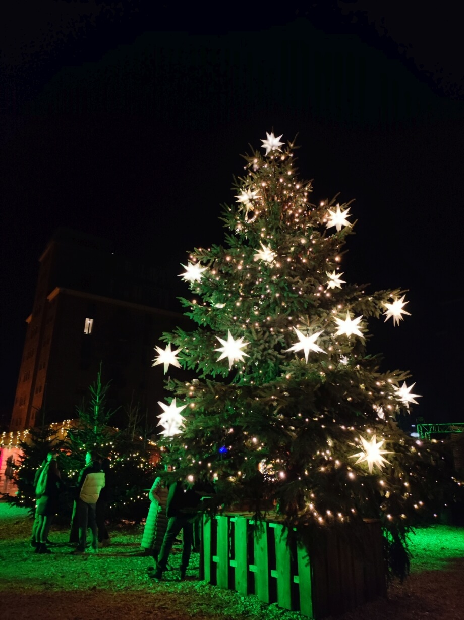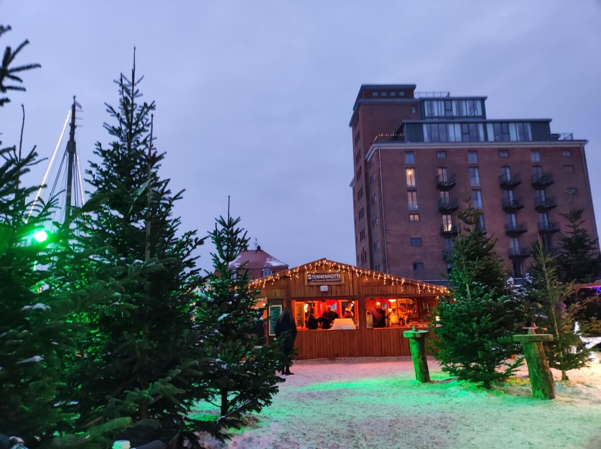 Hier laden rund 180 Tannen, kleine Holzbuden und eine offene Feuerstelle zum Innehalten ein. Zwischen Lichterketten und Tannenduft lässt sich der Alltag wunderbar vergessen – mit Blick auf die historischen Speicher und das glitzernde Wasser.